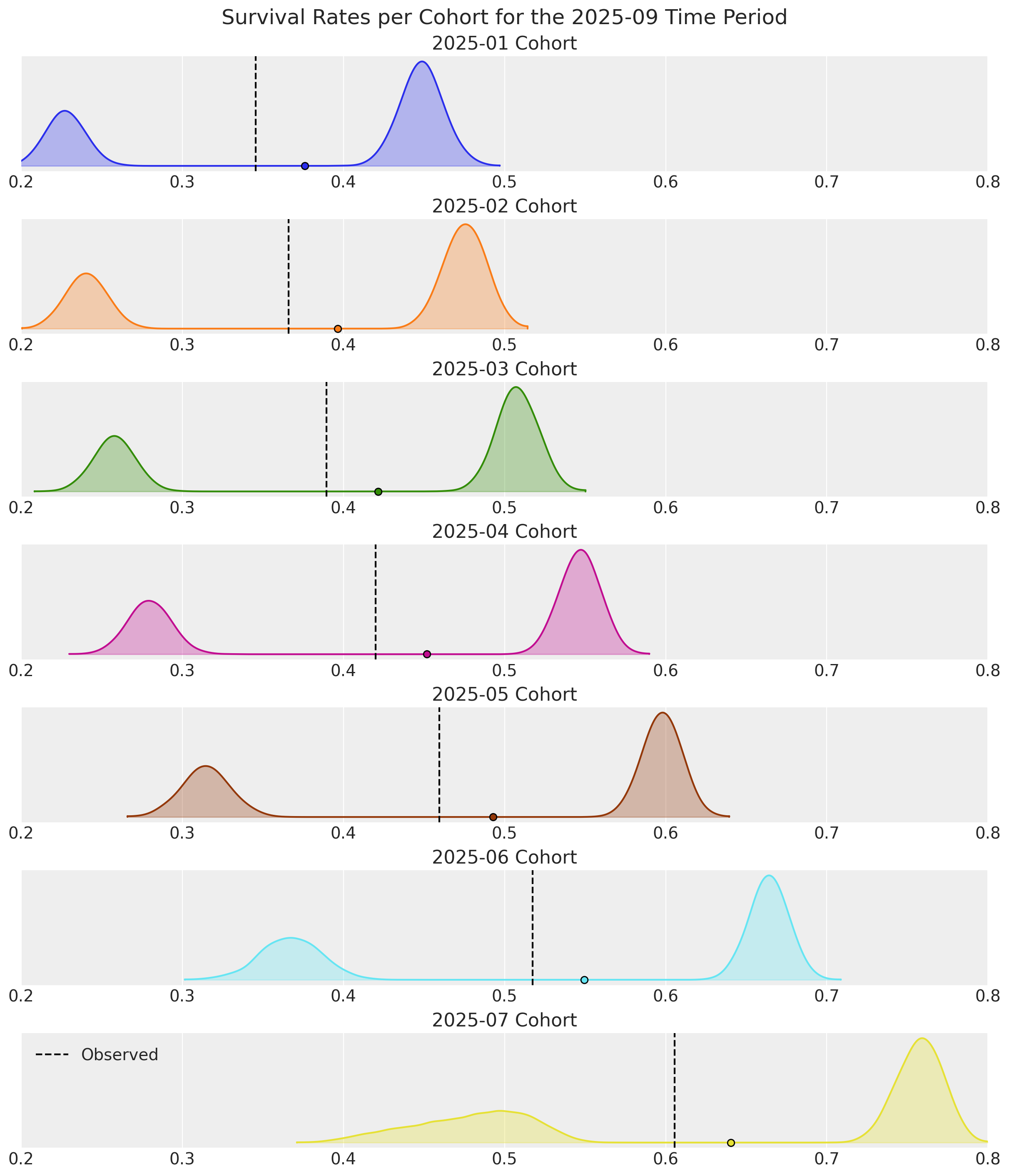 Retention elasticity is higher for earlier, long-running cohorts, but these retention rates also approach 95%. If retention were to be increased by just 5% for Regular customers in the 2025-07 cohort, their respective remaining lifetimes could be 25% longer!