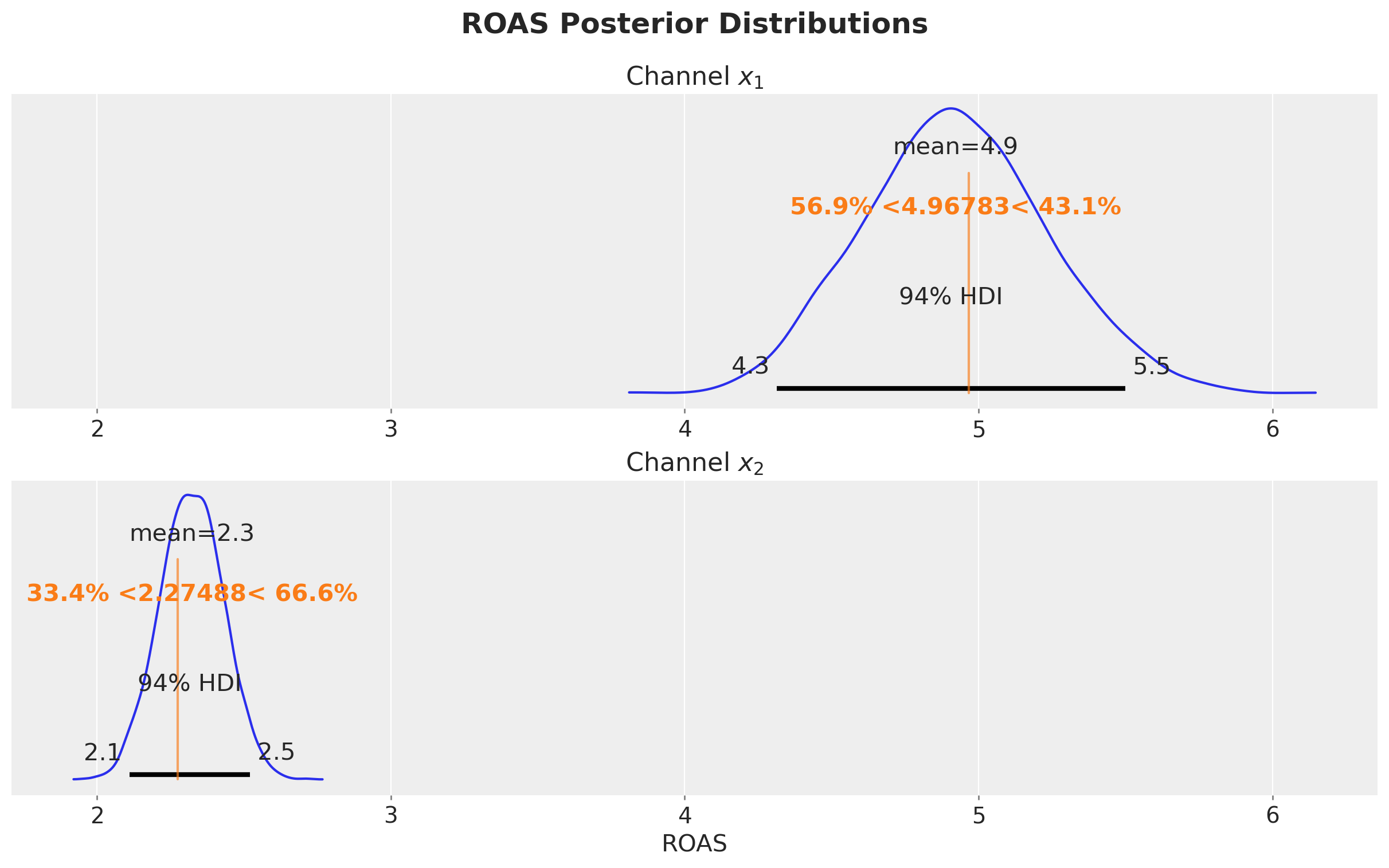 Budget Optimization: Allocate your marketing budget based on the parameters recovered by the model, finding the spend distribution to maximize the amount of contribution given a limited budget. See Budget Allocation with PyMC-Marketing.