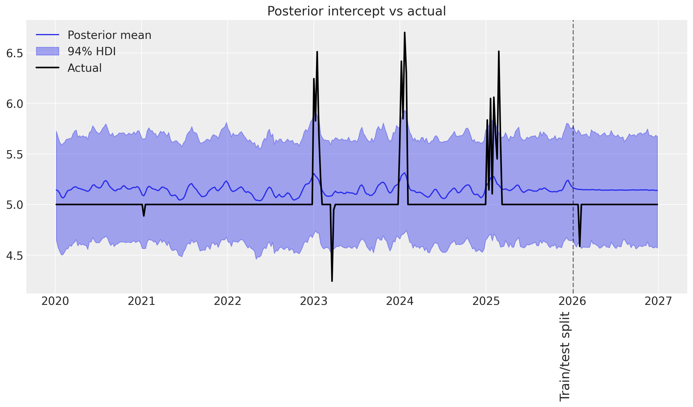 🤷♂️ Only the two major events are captured by the time-varying intercept.